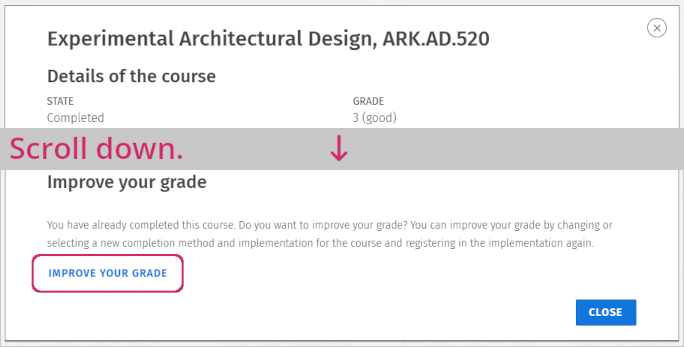 If you want to cancel your grade improvement selection you can find the option for that by selecting Show completion methods, on the course, in your study plan.