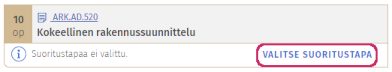 - Jos opintojakson kohdalla lukee Suoritustapaa ei valittu valitse Valitse suoritustapa.